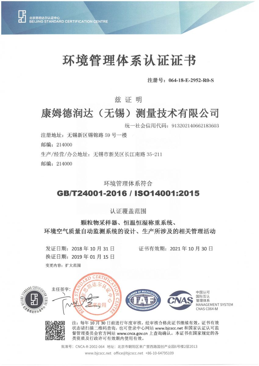 通過電子郵件推薦康姆德潤達(dá)(無錫)測量技術(shù)有限公司已順利通過GB/T24001-2016/ISO14001:2015環(huán)境管理體系認(rèn)證。